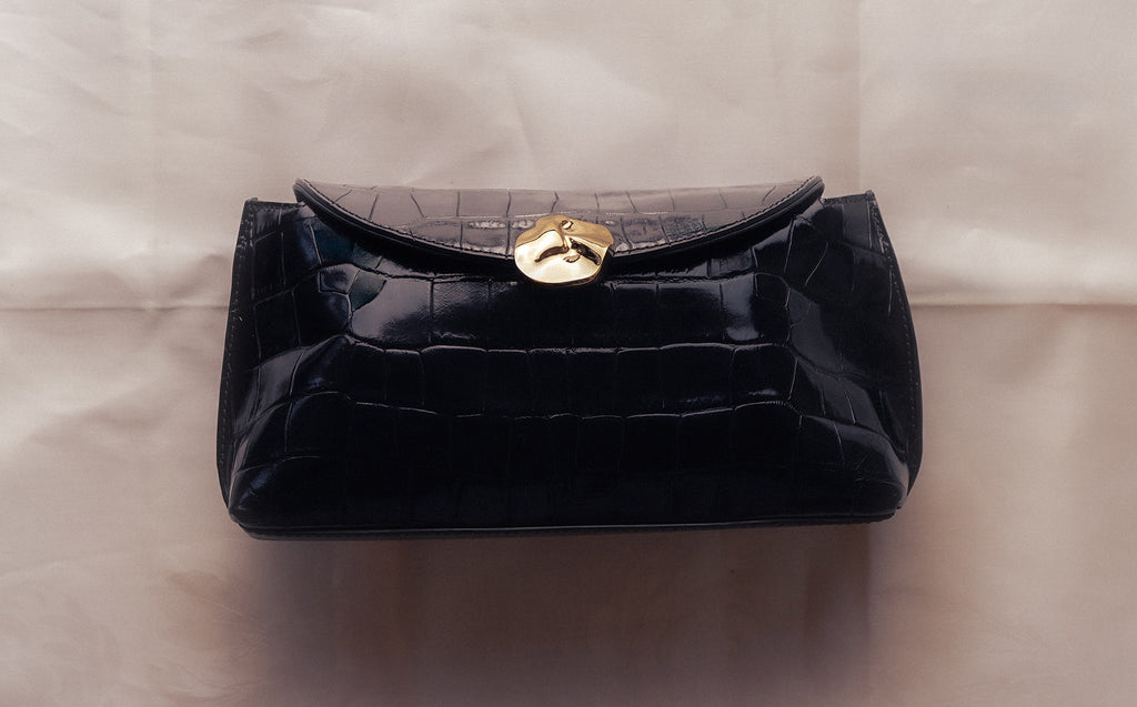 • Hanna Clutch Leather Croco Black
